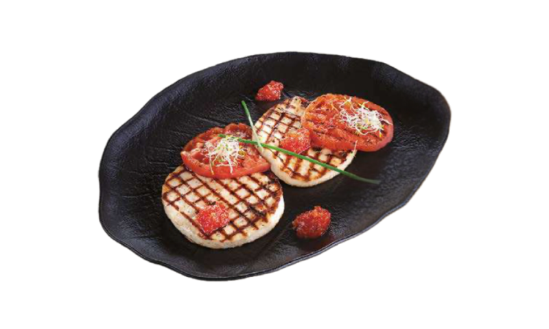 С вариация на печен и сладък конфитиран домат с песто Дженовезе.