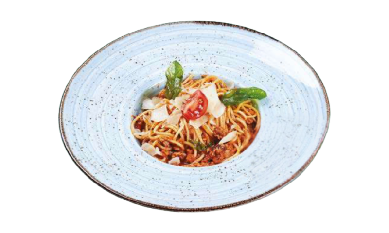 Бавно готвено телешко рагу, лук, моркови, доматен сос, пармезан и песто Дженовезе