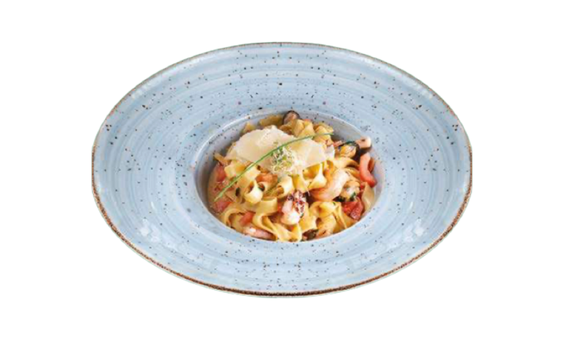 Скариди, миди, калмари, пармезанов крем, сос, магданоз, лимонов зест, масло и лимончело.